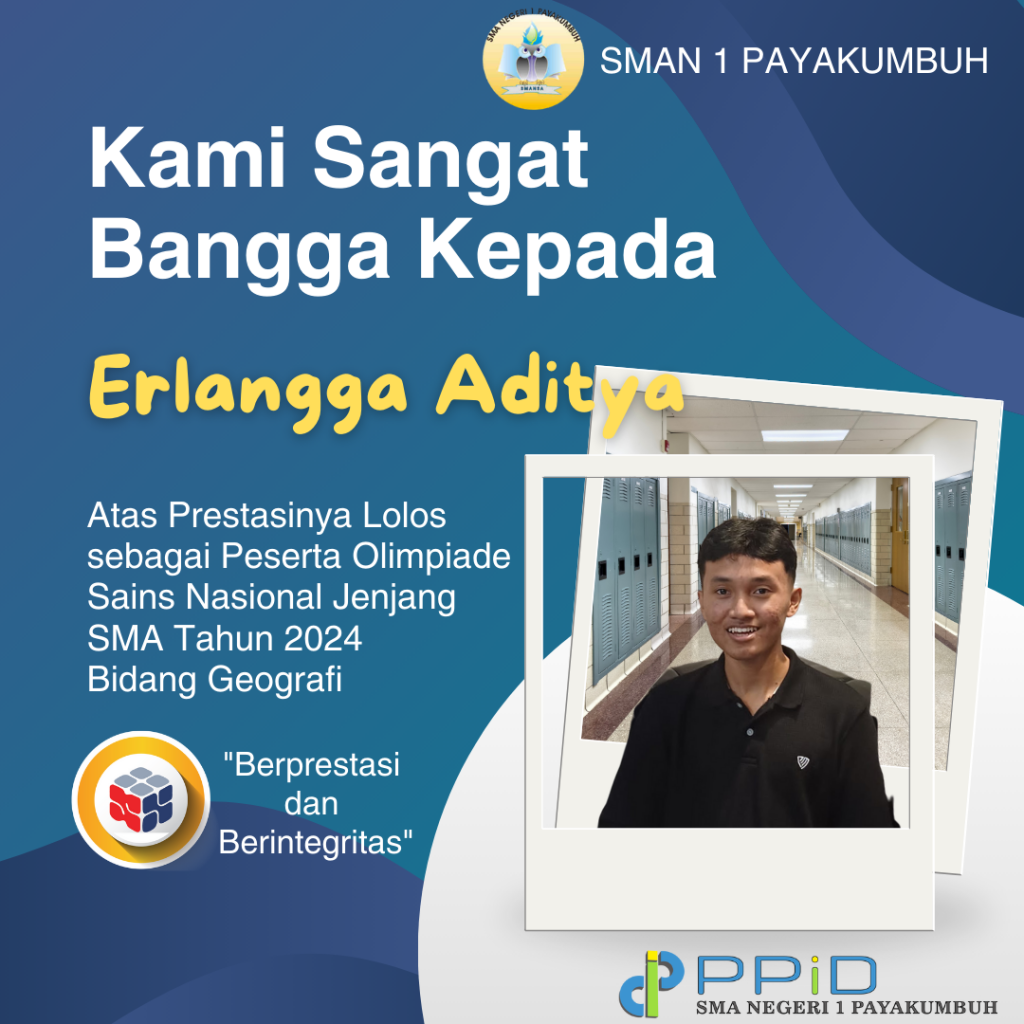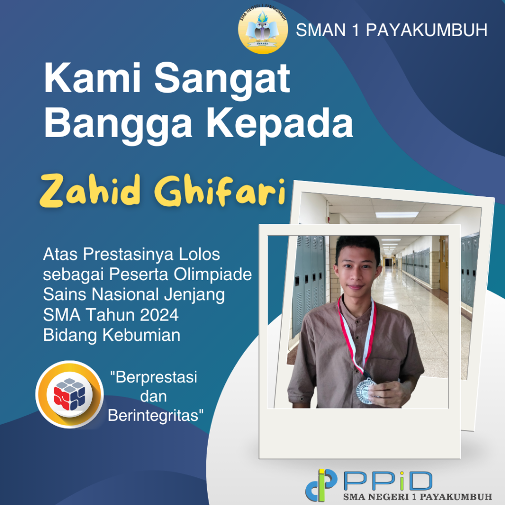 SMAN 1 Payakumbuh dengan bangga mengumumkan bahwa dua siswa berprestasi, Zahid Ghifari dan Erlangga Aditya, berhasil lolos pada ajang Olimpiade Sains Nasional (OSN) Tahun 2024. Kedua siswa ini menunjukkan kecemerlangan dalam bidang Kebumian dan Geografi, mewakili sekolah dengan hasil yang sangat membanggakan.