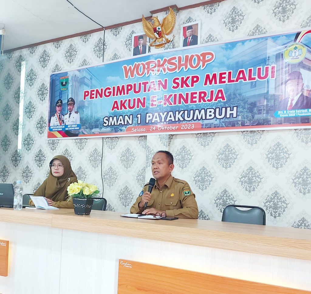 October 25, 2023Pada hari Senin tanggal 23 Oktober 2023, SMAN 1 Payakumbuh mengadakan kegiatan workshop penyusunan Sasaran Kinerja Pegawai (SKP) menggunakan aplikasi e-kinerja di ruang aula. Kegiatan workshop dihadiri oleh unsur pimpinan dan seluruh guru dan pegawai SMAN 1 Payakumbuh. Pengisian SKP menggunakan aplikasi e-kinerja ini berdasarkan PERMENPANRB No. 6 tahun 2022 tentang Pengelolaan Kinerja Pegawai Aparatur Sipil Negara. Materi workshop disampaikan oleh narasumber Ibu Yulia Aflinda, S. Pd, beliau seorang guru SMAN 1 Ampek Angkek. Semoga dengan pelaksanaan kegiatan ini, semua stake holder ASN dan P3K dapat melakukan pengiputan SKP melalui aplikasi ekinerja tanpa terkendala dan lancar.