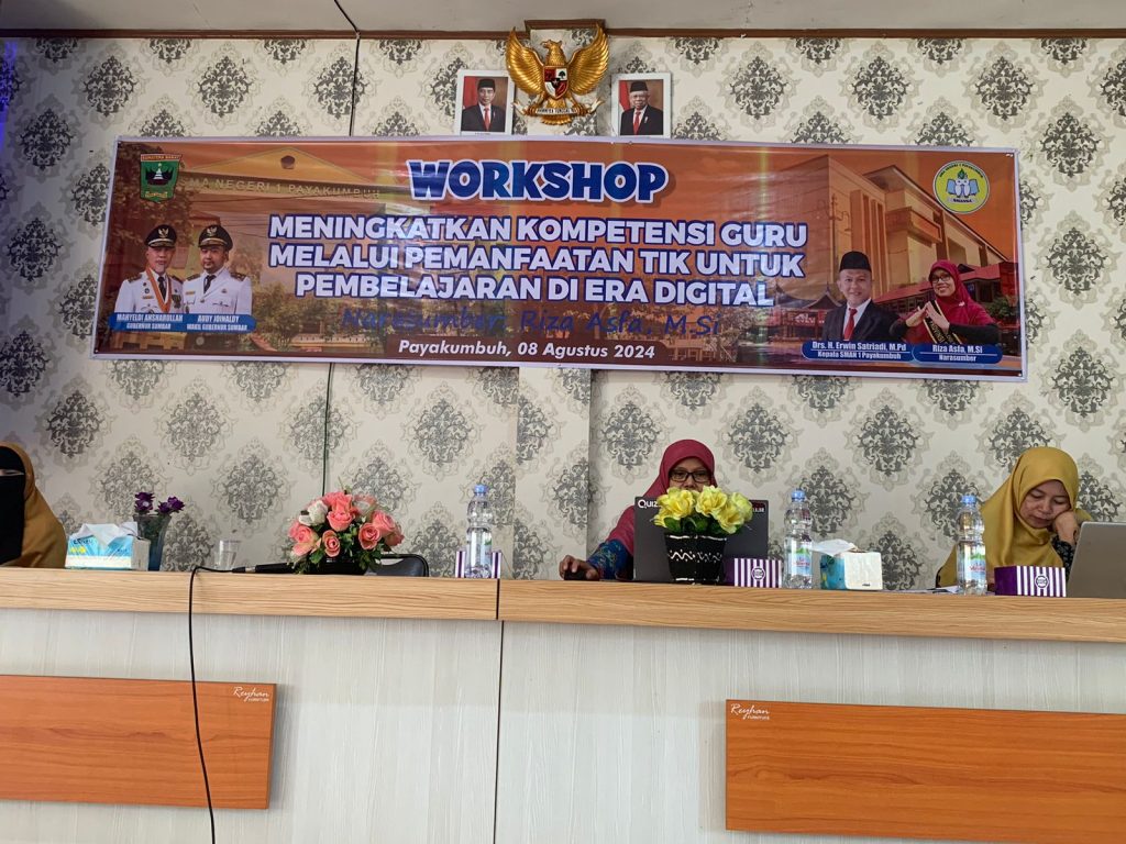 August 8, 2024SMAN 1 Payakumbuh terus berkomitmen untuk meningkatkan kualitas pendidikan dengan menggelar Workshop peningkatan kompetensi guru dalam pembelajaran berbasis Teknologi Informasi dan Komunikasi (TIK) pada hari Kamis, 08 Agustus 2024. Bertempat di aula sekolah dan ruang labor komputer, acara ini dihadiri oleh 32 guru yang tergabung dalam program kelas digital, salah satu program unggulan sekolah.